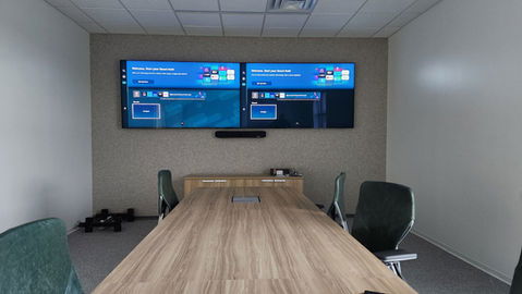 In addition to the core infrastructure, Techkinect also provided and installed AV systems across 15 rooms throughout the facility. Each space was equipped with large-format displays, including dual LED displays mounted side-by-side for expanded presentation capability, along with Polycom PTZ cameras and conferencing systems to support high-quality hybrid meetings. This created a consistent, professional user experience across all rooms while extending the value of the network and AV infrastructure throughout the entire facility.