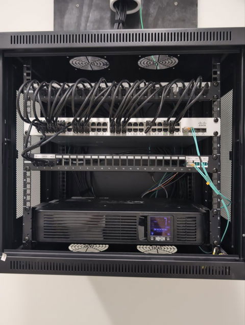 - Fiber backbone installation (multimode, 10G-capable) between key locations